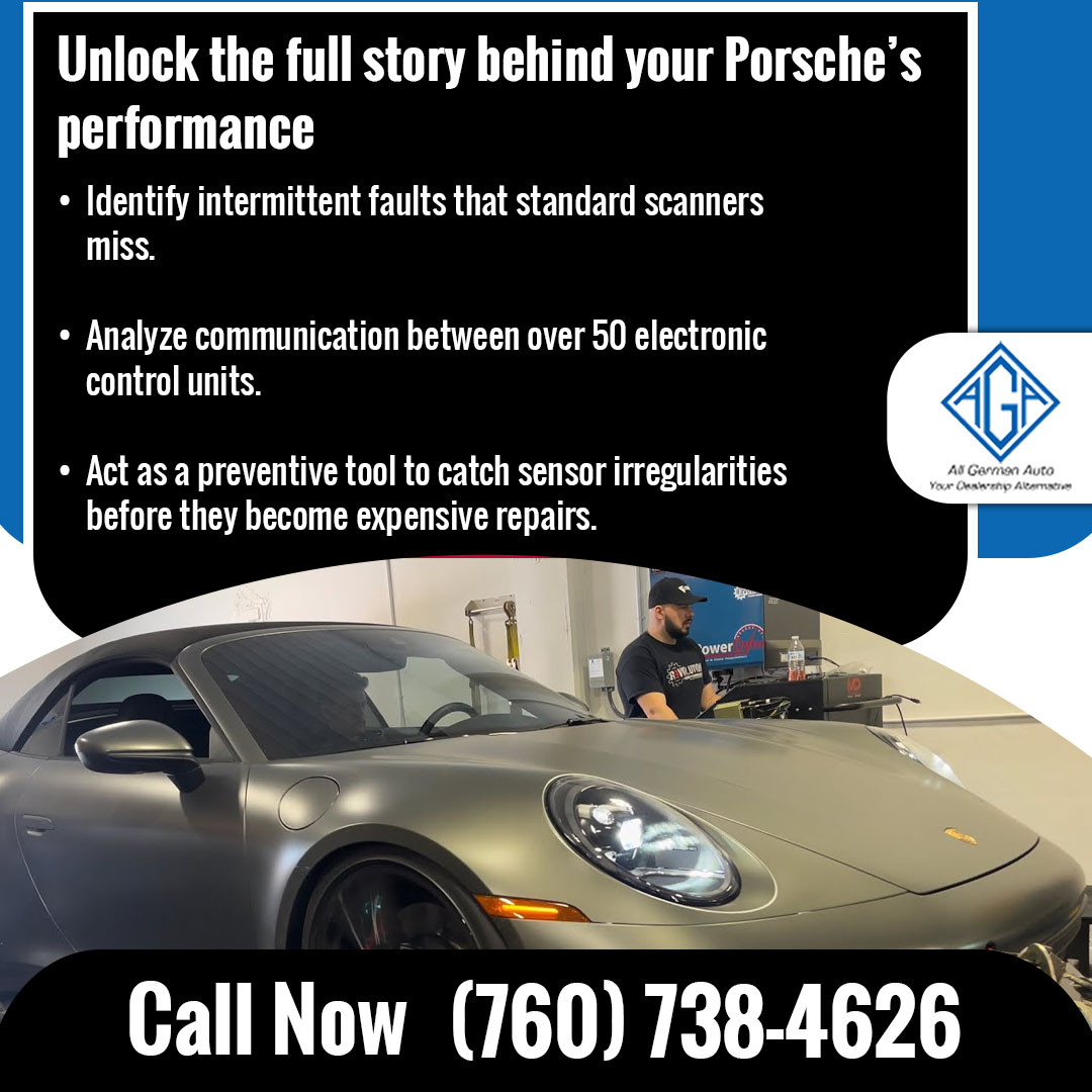 Porsche owners seeking accurate system analysis can benefit from professional diagnostic evaluations that explain vehicle data clearly and support informed maintenance decisions. To schedule a diagnostic or speak with a qualified Porsche mechanic in Escondido, CA, contact All German Auto at (760) 738-4626 or info@AllGermanAuto.com.
